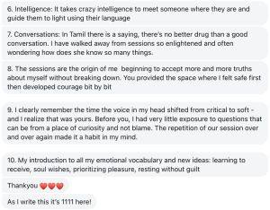 - No personal coaching or therapy, but I will support you with any doubts
